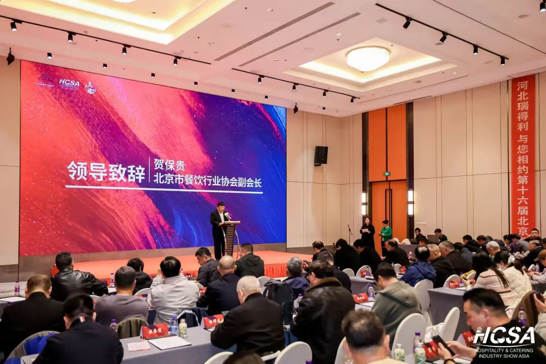 北京市餐饮行业协会副会长贺保贵出席并致辞,他表示:经过十多年的累积与发展,北京餐博会已经成为北方地区规模大、影响力强的行业盛会及链接产业上下游、推动行业创新的核心桥梁。每届展会的成功举办,都见证了餐饮行业的蓬勃生机与无限可能。如今,站在新的起点上,第十六届北京餐博会承载着更多的期待与使命,将继续为餐饮行业的发展注入强大动力。