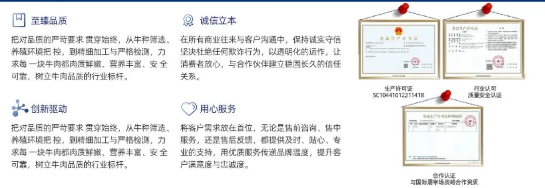 品质至上,从源头到餐桌,每一个环节都严格把关,确保每一块牛肉都安全、健康、美味;
