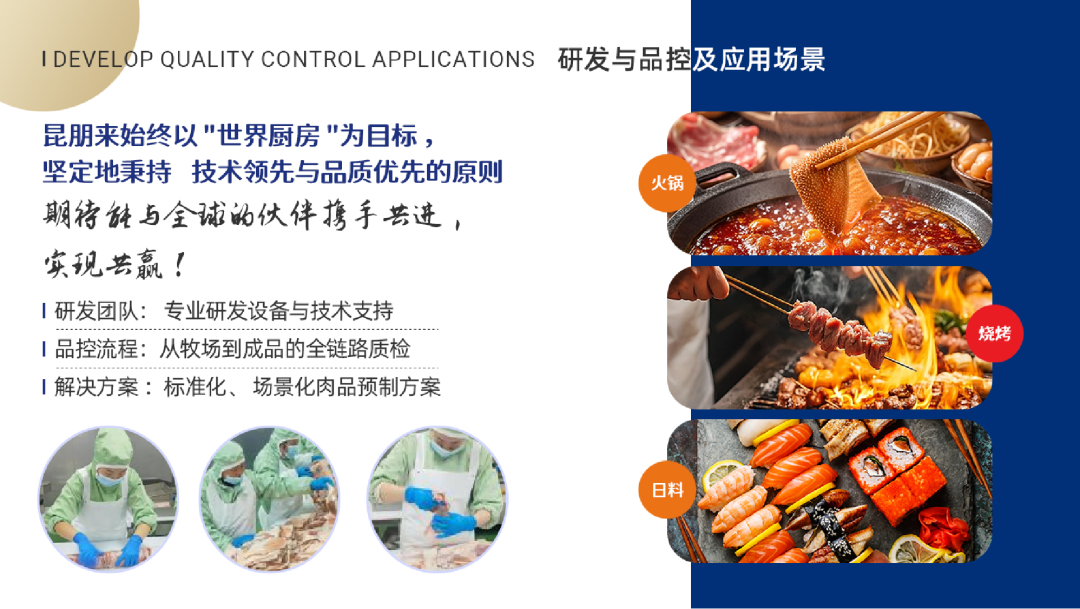 郑州昆朋来食品有限公司,坚守顾客食品安全为本,是一家集进口牛羊肉国际贸易、生产、加工、销售为一体的现代化企业,工厂布局全国三大地区,专注火锅烧烤、日式料理等餐饮业态提供标准化、场景化的肉品预制解决方案。