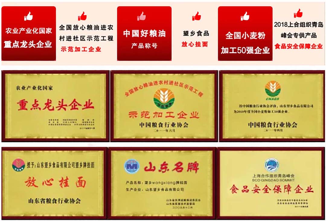 这份坚守,让“望乡”收获了行业与市场的双重认可:企业被授予“农业产业化国家重点龙头企业”“中国好粮油”“全国小麦粉加工50强企业”“放心面粉”“放心挂面”等称号;2018年,凭借卓越品质,公司产品成为上合组织青岛峰会专供产品,公司被评为“食品安全保障企业”,其公司产品更是远销世界30+个国家和地区,服务经销商数量1000+家,服务终端120000+家。